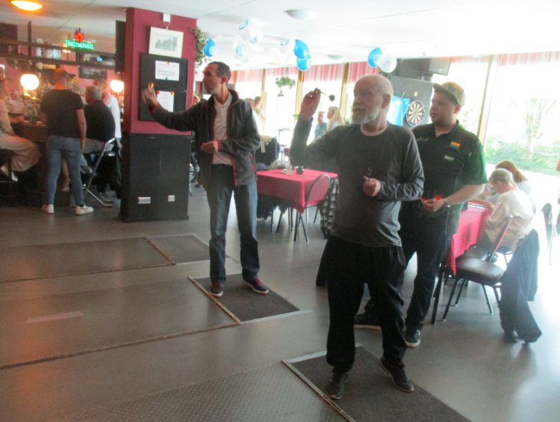 Afijn rond half vier was iedereen gekoppeld en kon Marco Vroon poules maken met 20 koppels en … een apart spelsysteem door de microfoon aankondigen! Een T53 maar, de tactics zonder de 10, 11 en de 12! En in plaats van 501 een 401? En als klap op de vuurpijl geen 301 maar, een 201 pff. Dit hebben we geweten tot groot hilariteit van velen! Je bent zo gewend dat als je de 11 en 14 dicht wilt gooien je bijna altijd één van beide getallen meeneemt omdat ze boven elkaar zitten maar, die verdomde 11 werd hierdoor een vijand die door velen meer dan veel onnodig geraakt werd en dus niet meetelde! Dit gelde natuurlijk ook voor de 10.